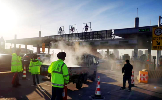2月8日16時(shí)06分,正值春運(yùn)返程下班高峰,山東高速股份煙臺(tái)運(yùn)管中心煙臺(tái)收費(fèi)站出口內(nèi)廣場(chǎng)一輛劇烈燃燒的小型貨車徑直駛向29車道,值班外勤人員發(fā)現(xiàn)異常后立即上前截停。為避免事態(tài)擴(kuò)大引發(fā)交通事故,煙臺(tái)收費(fèi)站迅速啟用《春運(yùn)期間突發(fā)事件應(yīng)急處置保暢預(yù)案》《煙臺(tái)收費(fèi)站工作場(chǎng)所火災(zāi)事件專項(xiàng)應(yīng)急預(yù)案》,組織工作人員第一時(shí)間將該起火車輛推離收費(fèi)站車道,同時(shí)上報(bào)運(yùn)營調(diào)度分中心關(guān)閉臨近車道并進(jìn)行車輛疏導(dǎo)。