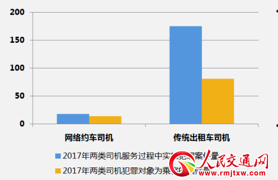 從案件量對比上,傳統(tǒng)出租車司機(jī)犯罪數(shù)量是網(wǎng)約車司機(jī)的9.7倍,萬人發(fā)案率是后者的13倍。無論從案件數(shù)量還是發(fā)生概率上相比較,網(wǎng)絡(luò)約車的安全性都遠(yuǎn)遠(yuǎn)高于傳統(tǒng)出租車。