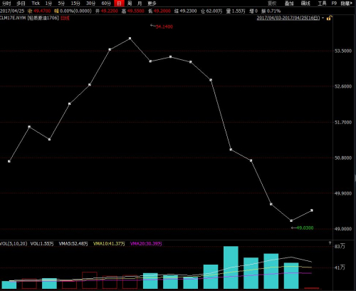 2017年4月美國WTI原油期貨價格走勢圖。來源:Wind資訊