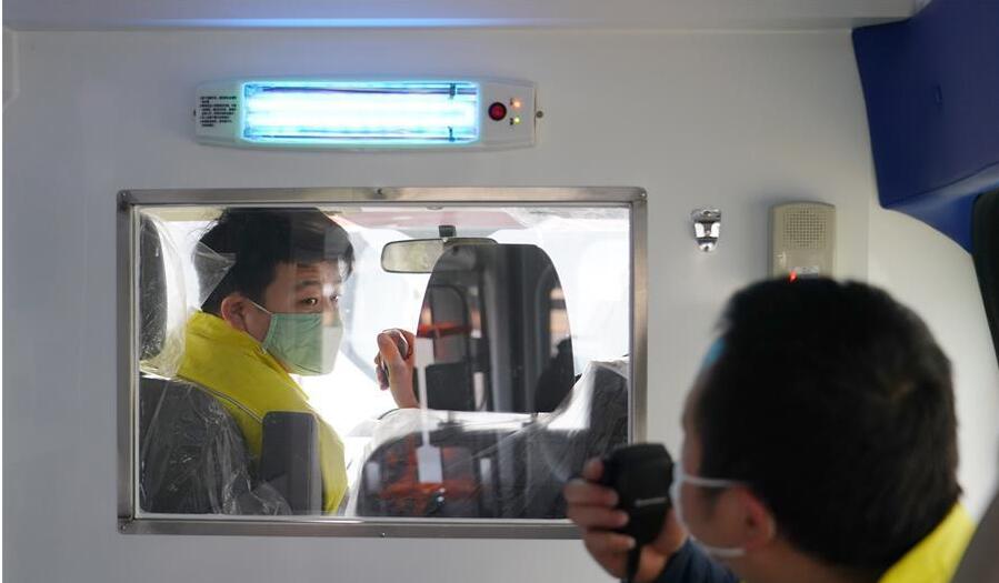 2月10日,陜西浩物威豪專用汽車有限公司工作人員在測試負壓救護車的紫外線燈和對講機。 近日,陜西西安市積極組織資質企業(yè)復工生產負壓救護車,交付醫(yī)院使用,助力防控新冠肺炎疫情。