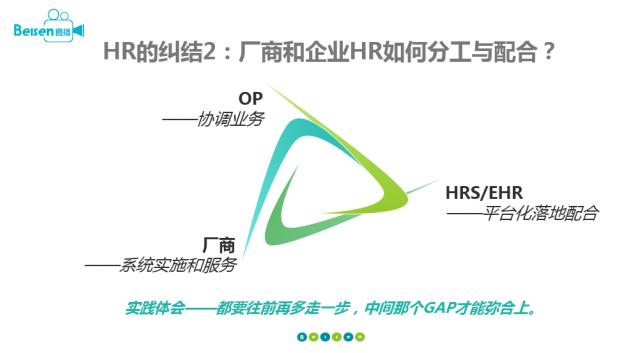 理想狀態(tài)下的配合,是三角互相支撐,OP來協(xié)調(diào)業(yè)務(wù),HRIS或EHR和廠商配合做平臺(tái)化的策略,然后廠商進(jìn)行系統(tǒng)實(shí)施和服務(wù)。