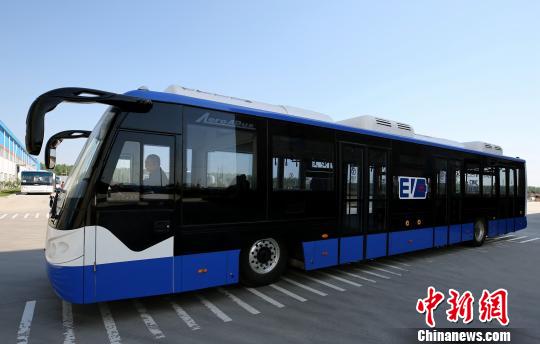 圖為中集空港公司自主研發(fā)的第二代純電動(dòng)機(jī)場(chǎng)擺渡車!⒘ 攝