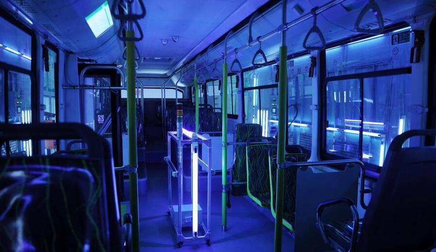 ,上海一輛公交車正在進行全方位紫外線照射殺毒。上海公交日前引進了紫外線殺毒技術(shù)對整車“內(nèi)外”消毒,消毒時采取封閉式作業(yè),每輛公交車內(nèi)外消毒時間只需10分鐘。