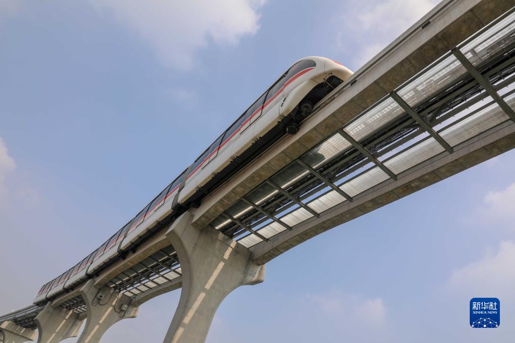 11月3日,蕪湖市無人駕駛跨座式單軌列車整裝待發(fā)。