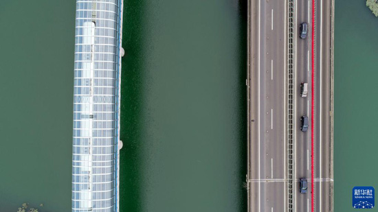 12月26日拍攝的武漢軌道交通16號(hào)線和桂子湖大橋(無人機(jī)照片)。新華社發(fā)(伍志尊攝)