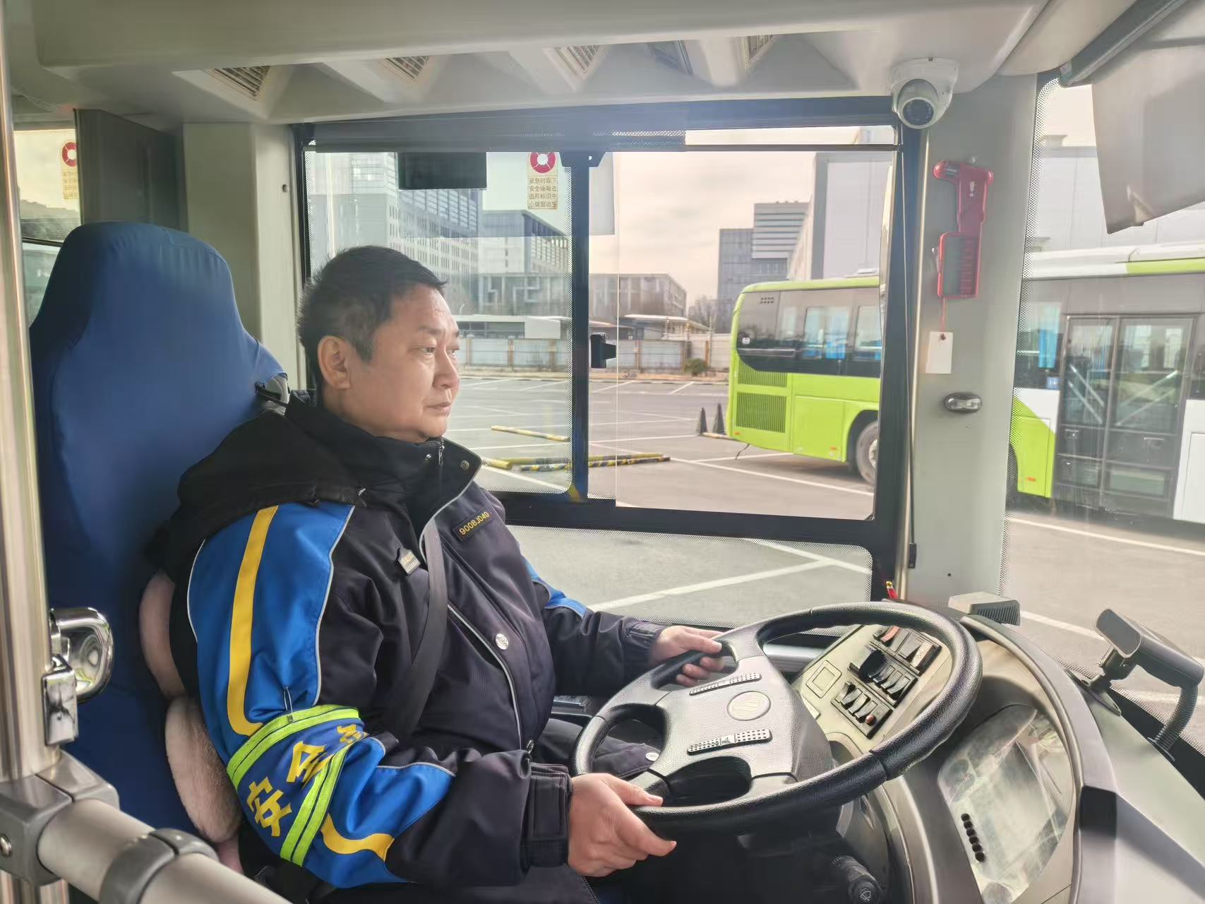 他駕駛的13路早班車,一頭連著小營場(chǎng)站,一頭通向西城三里河,線路貫穿京城核心區(qū)域,途經(jīng)雍和宮、南鑼鼓巷等知名地標(biāo),串聯(lián)起數(shù)個(gè)老舊社區(qū)。這條線路,承載著老人晨起買菜的日常,肩負(fù)著通勤族奔赴崗位的匆忙,更寄托著歸鄉(xiāng)者換乘趕路的期盼。凌晨四點(diǎn)半,夜色未褪、寒意襲人,城市尚在沉睡,楊兆京已經(jīng)抵達(dá)場(chǎng)站,開始細(xì)致入微的出車?yán)龣z。輪胎氣壓、制動(dòng)系統(tǒng)、燈光線路、車廂設(shè)施……每一個(gè)環(huán)節(jié)他都反復(fù)核查,絕不放過絲毫隱患。這份刻在骨子里的嚴(yán)謹(jǐn),源自他曾經(jīng)的衛(wèi)生兵經(jīng)歷。多年來,他總結(jié)出“緩起步、穩(wěn)提速、準(zhǔn)停靠”的行車口訣,成為兼顧乘車舒適與出行安全的“安全寶典”。從燃油車到新能源車的迭代升級(jí),從青澀新手到資深駕駛員,他始終堅(jiān)守零事故、零違章、零投訴的“三無”目標(biāo),在十米車廂里書寫著責(zé)任與擔(dān)當(dāng)。