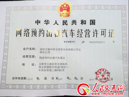 人民交通訊:2019年4月9日,萬順叫車獲得了山西省運城市、廣西省玉林市當(dāng)?shù)刂鞴懿块T頒發(fā)的《網(wǎng)絡(luò)預(yù)約出租汽車經(jīng)營許可證》。截至目前,萬順叫車已獲得全國178個城市網(wǎng)約車合法經(jīng)營牌照,距實現(xiàn)全國覆蓋的經(jīng)營規(guī)劃目標(biāo)又邁進了堅實的一步。