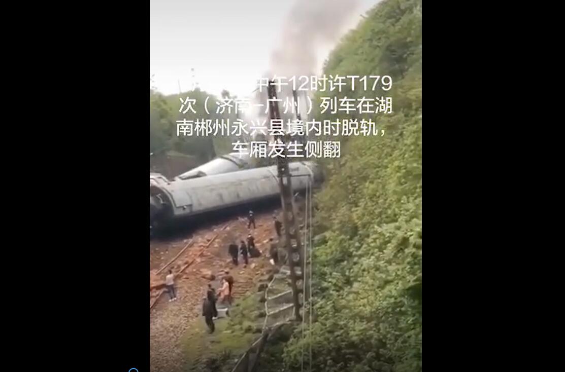 3月30日中午12時(shí)許,T179次(濟(jì)南-廣州)列車運(yùn)行至湖南郴州永興縣高崗司鎮(zhèn)境內(nèi)發(fā)生側(cè)翻,有車廂側(cè)翻,導(dǎo)致機(jī)后第一節(jié)發(fā)電車起火,第二至六節(jié)車廂脫線傾覆。鐵路部門第一時(shí)間啟動(dòng)應(yīng)急預(yù)案,和地方消防官兵積極展開搶險(xiǎn)救援行動(dòng)。經(jīng)第一輪搜救,起火車頭內(nèi)無人員被困,側(cè)翻車廂所有被困人員已安全撤離,受傷人員由政府統(tǒng)一安置。 經(jīng)第二輪搜救后,一名乘務(wù)員被卡在13-14節(jié)擠壓車廂中間,2名送往醫(yī)院的重傷人員無生命危險(xiǎn),情況穩(wěn)定。 目前,明火已基本被撲滅,正在組織第三輪搜救。