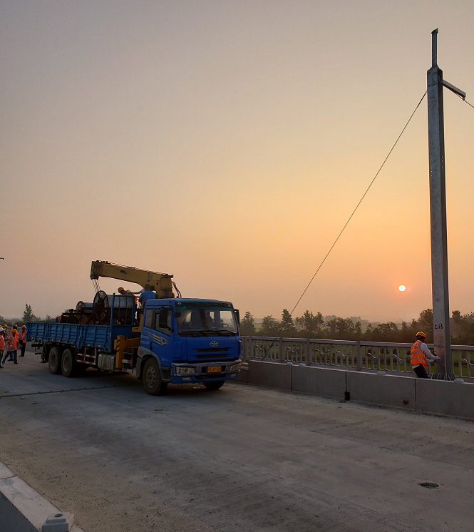 2020年8月23日上午6時(shí)30分至9時(shí)10分,汽車(chē)隨車(chē)吊把一條長(zhǎng)1846.765米的附加線,穩(wěn)穩(wěn)地架設(shè)在黃梅南至孔壟北135#-211#(DK283+065-DK284-911)上。至此,集團(tuán)公司安九鐵路接觸網(wǎng)笫一條附加線成功架設(shè),也標(biāo)志著安九鐵路接觸網(wǎng)上部施工邁大步。