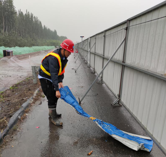 涉京津塘高速施工區(qū)域已完成泡沫土施工、灰土填筑。“沿圍擋向北有幾處爆閃燈損壞,需聯(lián)系專業(yè)人員修理;南側(cè)的停車港灣區(qū)段的水面正常;繼續(xù)向南,K87+700處受損的三塊圍擋還未修復(fù),但已經(jīng)采取固定措施。”楊永強準(zhǔn)確地記錄下現(xiàn)場巡視情況,為項目的順利開展保駕護(hù)航。受降雨影響,無室外作業(yè)內(nèi)容,但因高速行車帶來防護(hù)壓力,需要時刻警惕高速突發(fā)狀況,在現(xiàn)場做好應(yīng)急準(zhǔn)備,第一時間排除風(fēng)險隱患。