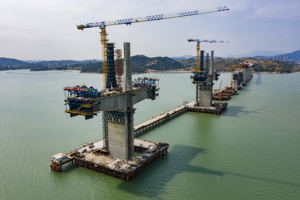 3月10日,由中鐵十一局承建的新建福(州)廈(門)鐵路湄洲灣跨海大橋主塔成功封頂。該跨海大橋位于福建省莆田市和泉州市境內(nèi),全長14.7公里,是新建福廈鐵路重點(diǎn)控制性工程。新建福廈鐵路是國內(nèi)首條跨海高鐵,設(shè)計(jì)時(shí)速350公里。