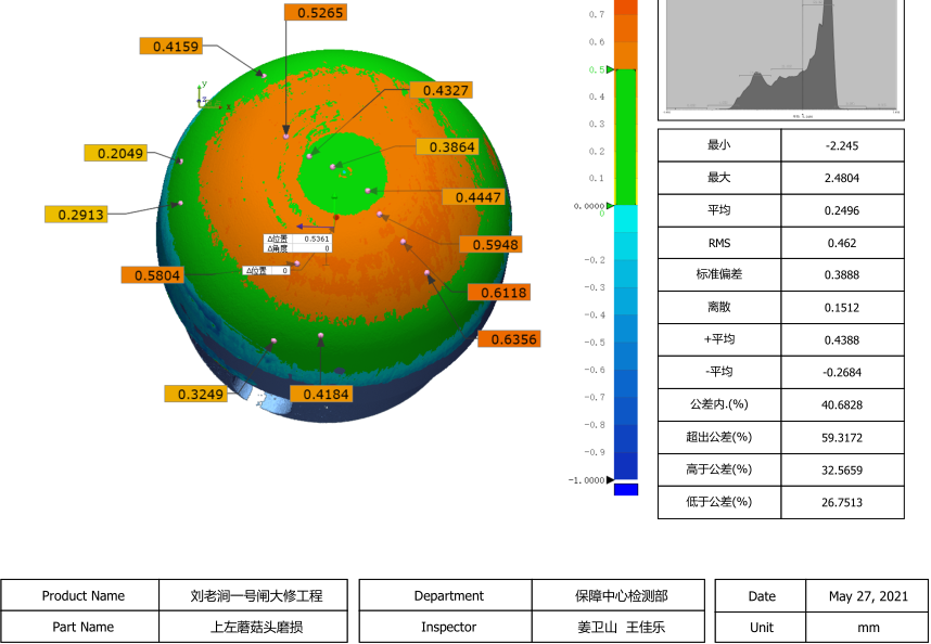 檢測(cè)人員運(yùn)用3D激光掃描儀AtlaScan對(duì)上游左岸蘑菇頭進(jìn)行檢測(cè)并進(jìn)行軟件處理(文/圖:蔣廉鄧、高偉、陳建飛)