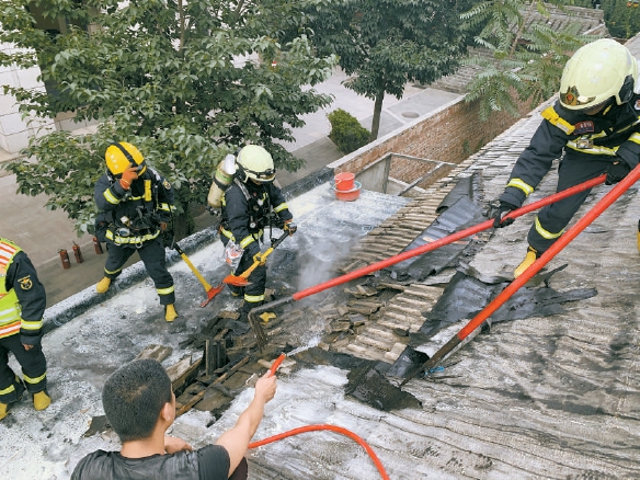 “不好,趕緊救火。”張旭跑進(jìn)2號院,取出居民家中的消防水喉爬上房頂,幾分鐘之后,濃煙消散,火情被控制住了。“多虧提前安了水喉,要不這一盆一盆地端水上房,肯定來不及了。”