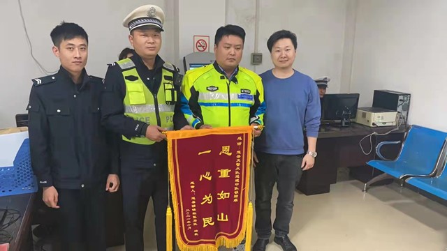10月11日下午,一位男士將一面寫有“恩重如山、一心為民”的錦旗送到道縣公安局交警大隊,親手贈予巡邏中隊鐵騎組,表達(dá)感激之情。