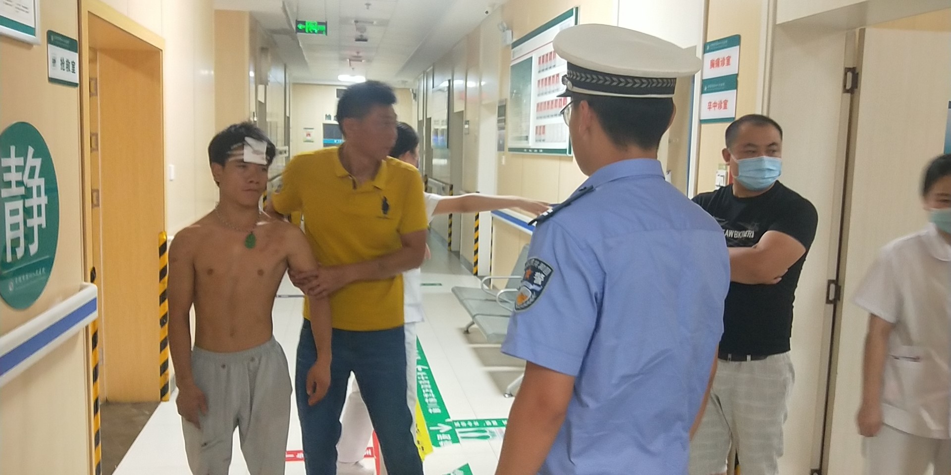 經(jīng)醫(yī)生救助后,該傷者脫離生命危險(xiǎn),但需要在醫(yī)院進(jìn)一步留院觀察。傷者家屬緊緊握住兩位民警的手真誠(chéng)的感謝。