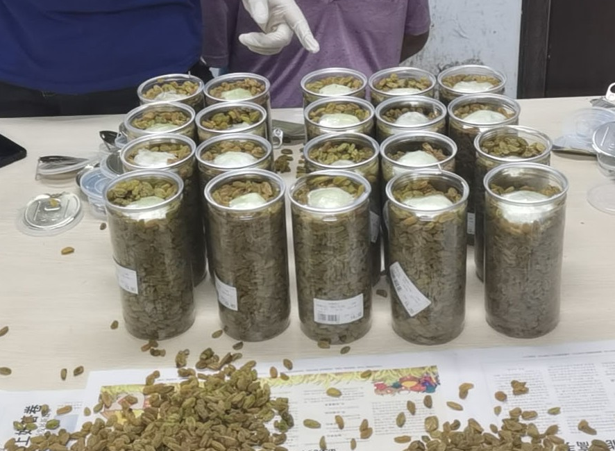 8月29日,云南普洱邊境管理支隊(duì)孟連大隊(duì)移民管理警察在轄區(qū)開(kāi)展行業(yè)場(chǎng)所檢查,當(dāng)檢查到一家快遞點(diǎn)內(nèi)的一個(gè)寄往重慶的快遞包裹時(shí),發(fā)現(xiàn)包裹里裝有20罐葡萄干。