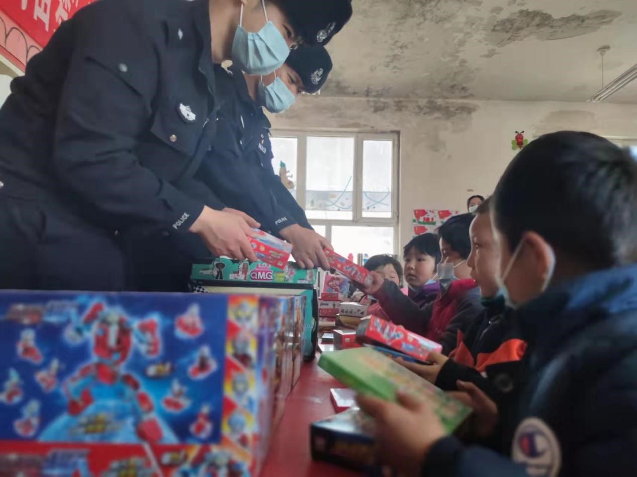 活動前夕,民警們及時對接阿依加瑪麗老師,統(tǒng)計(jì)好孩子們?nèi)粘K栉锲芬约耙挛飻?shù)量,主動的聯(lián)系慈善機(jī)構(gòu),同時發(fā)動社會各方力量,勢必要為孩子們籌備好冬季保暖物資。通過民警們半個月的不懈努力,派出所相繼收到了來自江蘇、北京、上海等全國5個省份的包裹,經(jīng)統(tǒng)計(jì),其中冬季衣物37套,書籍100余本,玩具50余套,價值一萬余元;顒又,派出所民警及時協(xié)調(diào)好車輛,第一時間將一件件物資運(yùn)送至校園,親手為孩子們送去溫暖。在孩子們眼中,看到這琳瑯滿目的衣服和玩具,似乎雪域高原的寒冬飄雪,都難掩臉上的洋溢的笑容。握著手里的玩具,學(xué)生麥麥提臉上止不住的欣喜,民警們則帶著孩子們識圖認(rèn)字。就這樣,教室里回蕩著孩子們稚嫩、天真的笑聲。阿依加瑪麗老師表示:非常感謝社會各界愛心人士的捐贈,讓我們的孩子們都能度過一個溫暖、快樂的冬季。