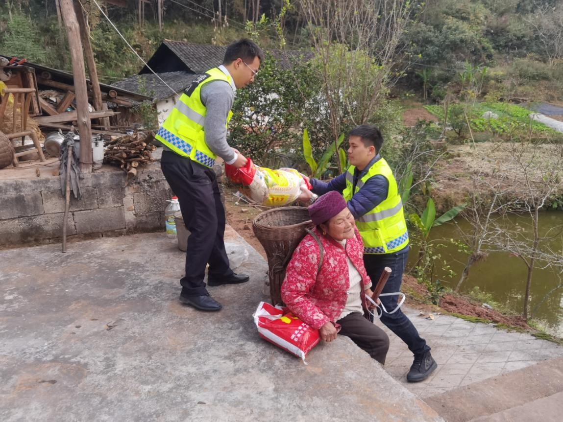 經(jīng)與老人交談得知,老人今年已經(jīng)80歲,家中還有一位107歲的老母親需要照顧,這些大米、食用油、包谷、面粉等是她們母女兩人今年春節(jié)前所有的生活物資。由于村級(jí)公路離家還有大約500米左右,從集市采購(gòu)的生活物資通過(guò)車輛運(yùn)輸?shù)酱宓缆房诤,還需要通過(guò)人工搬運(yùn)到家。