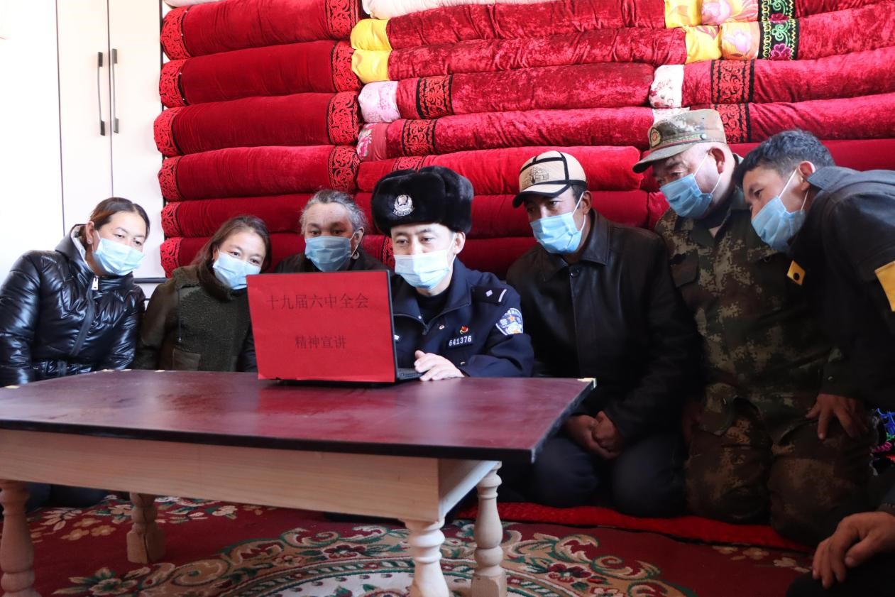 宣傳小分隊的民警提前做足宣講前的準備,對惠民政策、熱點分析、全會精神進行了系統(tǒng)整理,深入邊境轄區(qū),走向老百姓家中,通過開展實地、視頻送學活動,用群眾接受的方式、通俗易懂、貼近實際的語言向柯爾克孜族群眾傳達全會內容、解讀會議精神和國家惠民惠農新政策,打通全覆蓋宣講“最后一公里”。