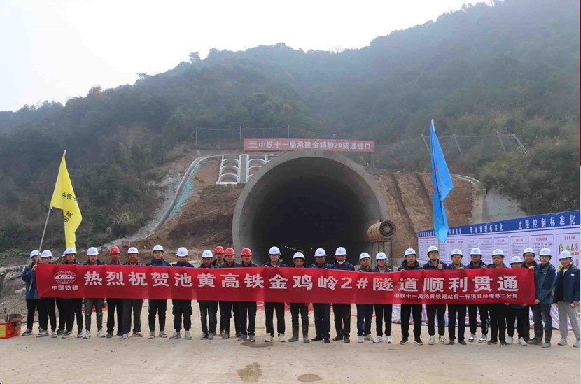 12月8日8點(diǎn)58分,中鐵十一局池黃鐵路站前一標(biāo)金雞嶺2號(hào)隧道順利貫通,作為全標(biāo)段首個(gè)全面貫通隧道,標(biāo)志著本標(biāo)段隧道施工取得重大突破,為下一步架梁鋪軌任務(wù)奠定基礎(chǔ)。