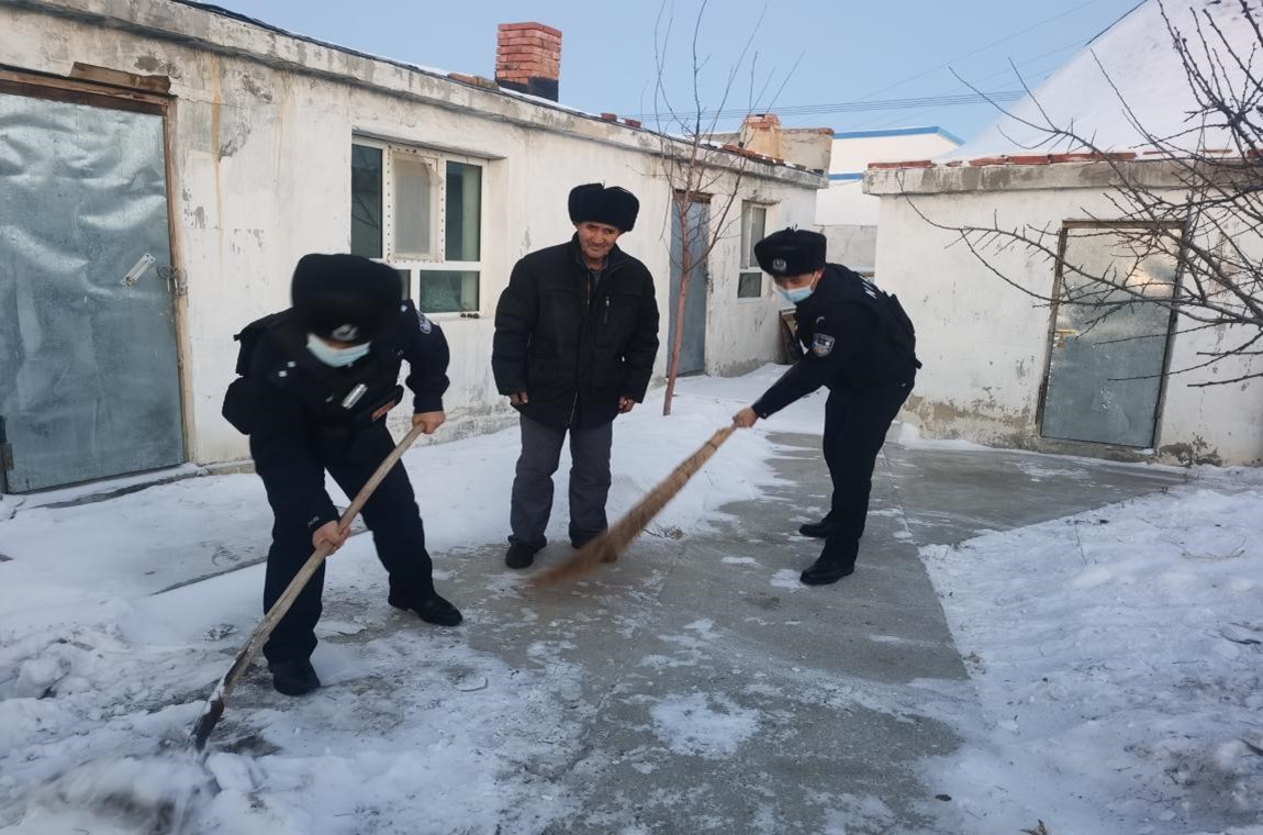 12月24日,為了便于駐地群眾出行,哈巴河邊境管理大隊(duì)薩爾布拉克邊境派出所安排警力深入轄區(qū),幫助駐地孤寡老人清理庭院內(nèi)和道路上的積雪、收拾房子,叮囑孤寡老人注意防范冬季凍傷和煤煙中毒。