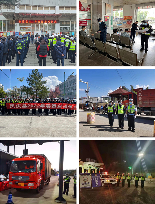 為統(tǒng)籌做好2022年春運(yùn)安全管理工作和疫情防控常態(tài)化工作,保障人民群眾安全、便利、滿意出行。臨滄市公安交警部門圍繞黨的二十大交通安保暨2022年道路交通事故預(yù)防“減量控大”集中整治第一波次行動(dòng)總體要求, 1月17日春運(yùn)首日,各縣區(qū)公安交警聯(lián)合運(yùn)政、路政、客運(yùn)企業(yè)、保險(xiǎn)等部門舉行春運(yùn)啟動(dòng)儀式,同時(shí)啟動(dòng)所有交警執(zhí)法站、執(zhí)勤點(diǎn),充分發(fā)揮公路交通安全防控體系作用,落實(shí)分級(jí)分類查控機(jī)制,全力做好春運(yùn)道路保安全保通暢工作,為春節(jié)、北京冬奧會(huì)和全國(guó)、全省“兩會(huì)”勝利召開營(yíng)造平安祥和的道路交通環(huán)境。