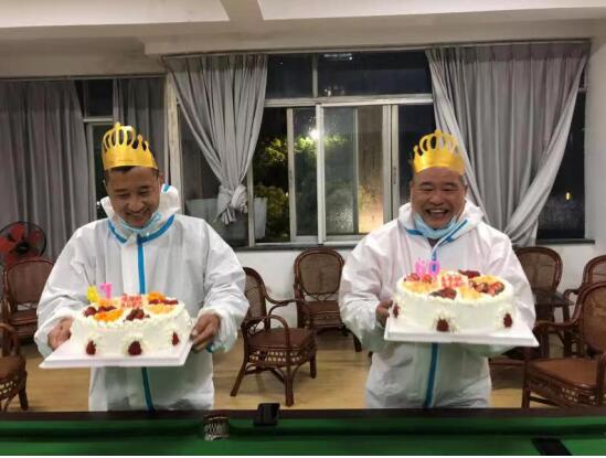 上午,出租車隊(duì)隊(duì)長(zhǎng)無(wú)意間得知當(dāng)天是出租車駕駛員吳壽林和張旭彬兩人的生日,但因執(zhí)行抗“疫”任務(wù)無(wú)法在家慶生,而對(duì)于吳壽林而言,今年更是他的60歲大壽。出租車隊(duì)隊(duì)長(zhǎng)當(dāng)下便決定為這兩位“戰(zhàn)‘疫’中的壽星”過(guò)一個(gè)“戰(zhàn)地生日”。于是他自掏腰包,悄悄地訂購(gòu)了生日蛋糕……待當(dāng)天所有任務(wù)完成后,吳壽林和張旭彬在簡(jiǎn)單又溫馨的“戰(zhàn)地生日”中,收到了來(lái)自同事和家人滿滿的生日祝福。