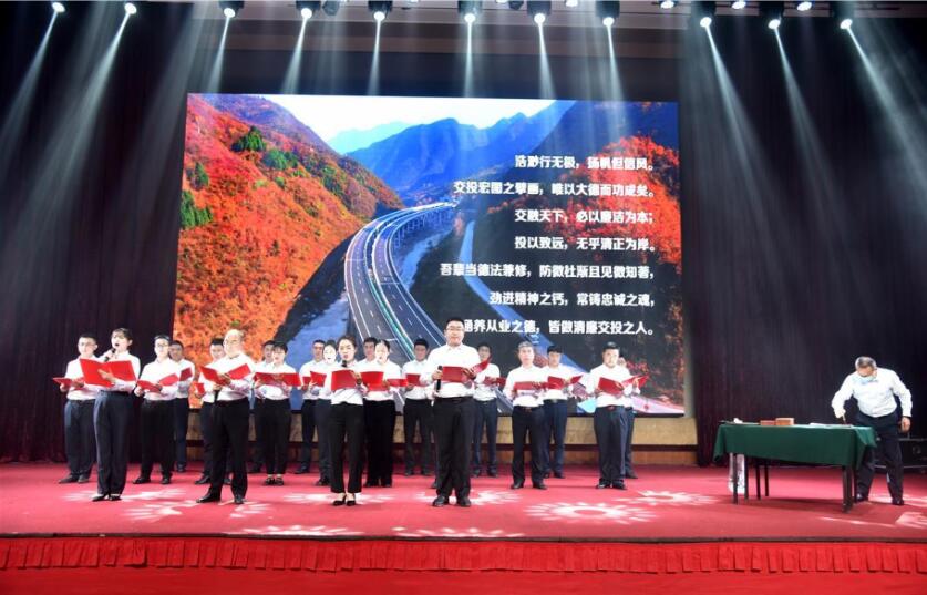 “交投承‘兩商’大業(yè),交融天下,廉潔為本;投以致遠,清正為岸……”4月26日,在瑯瑯的誦讀聲中,湖北交投十堰片區(qū)的20多名黨員干部熱情謳歌“崇廉、敬廉、守廉”的清廉主旋律,片區(qū)約百余人通過抖音直播、視頻號、微信轉播等形式接受了“廉”文化的洗禮。