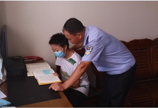 最近幾天,在甘肅省永靖縣公安局古城派出所,多了一個(gè)小男孩,一會(huì)在大院里玩耍,一會(huì)在宿舍寫作業(yè),看著爸爸忙碌的身影,他也乖巧、懂事地干著自己的工作,他叫祁緒瑞,是派出所民警祁先拯的兒子,因妻子尤玲芳被抽調(diào)到疫情隔離點(diǎn),放暑假的兒子無人照看,在疫情防控的特殊時(shí)期,派出所成了祁緒瑞的另一個(gè)家。