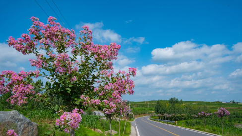向陽(yáng)路彩化工程結(jié)合了費(fèi)縣悠久的歷史,重點(diǎn)加入體現(xiàn)沂蒙精神、沂蒙文化的紅色元素,打造了一路向陽(yáng)、東蒙驛站、果香漫谷等重點(diǎn)節(jié)點(diǎn),滿(mǎn)足了交通、旅游和防火三個(gè)功能,同時(shí)優(yōu)化了費(fèi)縣北部路網(wǎng),改善了景區(qū)的通行條件,對(duì)于完善區(qū)域國(guó)防路網(wǎng)結(jié)構(gòu),增強(qiáng)部隊(duì)機(jī)動(dòng)作戰(zhàn)能力,更好地適應(yīng)新形勢(shì)下軍事斗爭(zhēng)具有十分重要的戰(zhàn)略意義。向陽(yáng)路所經(jīng)區(qū)域?yàn)樯綆X重丘區(qū),土壤多為破碎砂石,風(fēng)化沙土等,充分考慮栽植成活和后期管理養(yǎng)護(hù)問(wèn)題,選擇了流蘇、海棠、紫薇等耐干旱、耐瘠薄、抗寒的樹(shù)種,同時(shí)在體現(xiàn)紅色元素上,還選擇了榆葉梅、薔薇、五角楓等樹(shù)種,讓游客體驗(yàn)到身處紅色海洋,與當(dāng)?shù)丶t色文化融為一體。