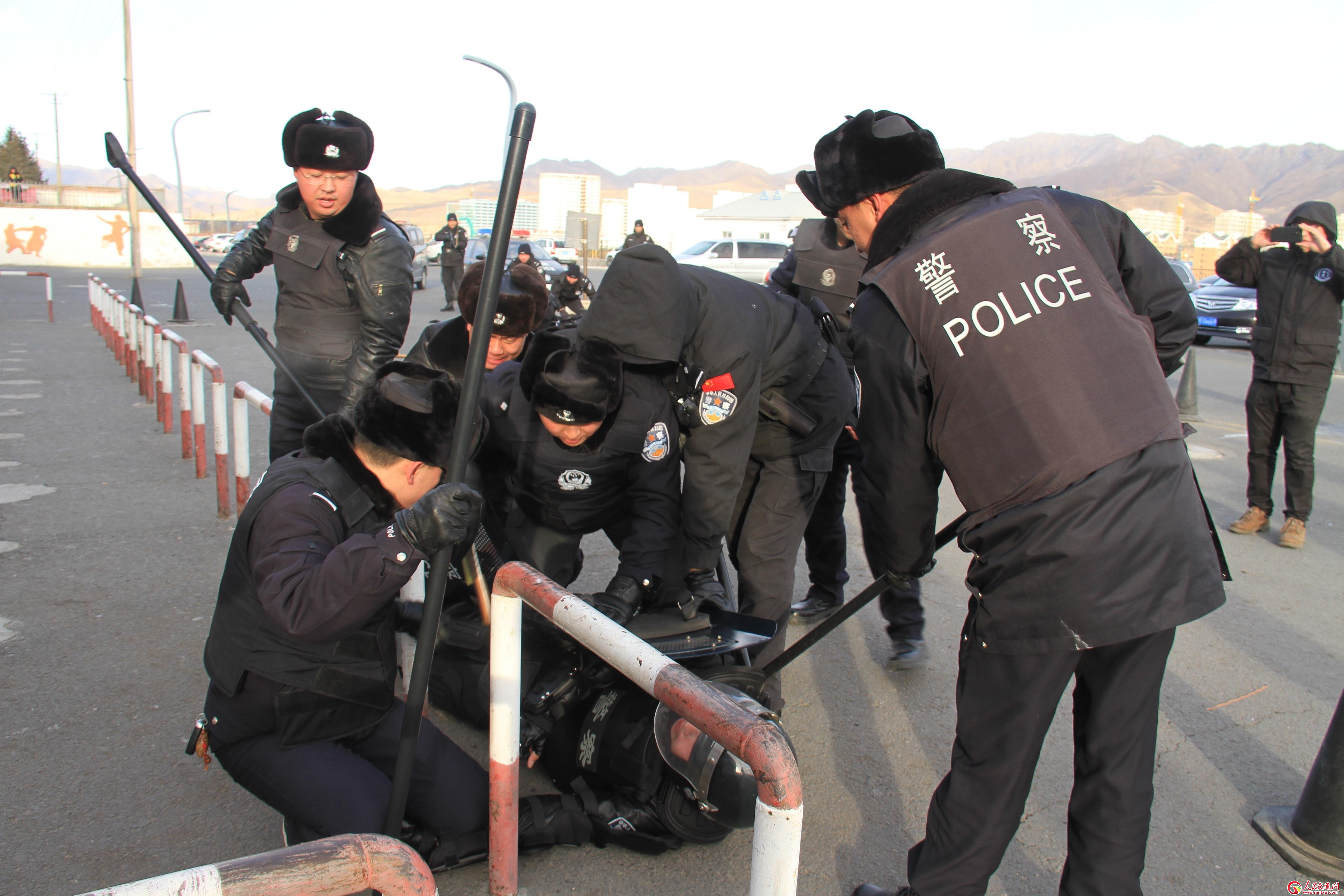 參加演練的民警反映迅速、配合密切,及時疏散周邊群眾,第一時間將嫌疑人手中的刀具奪下,快速制服暴恐分子并迅速搶救傷員,成功處置一起“刀斧砍暴恐”事件,演練取得了圓滿成功。