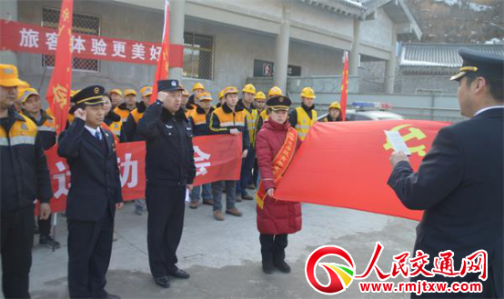 人民交通陜西2月1日電(記者常玉坤 通訊員孟亮)2018年2月日延安鐵路公安處黃陵站派出所組織轄區(qū)各單位在黃陵南火車站廣場(chǎng)隆重舉行了2018年春運(yùn)安保啟動(dòng)儀式, 期間通過向黨團(tuán)員突擊隊(duì)、志愿者小分隊(duì)授旗,通過黨團(tuán)員代表、志愿者代表宣誓,向過往旅客普及防假票技巧等多種形式拉開了轄區(qū)春運(yùn)序幕。