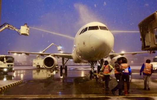 機(jī)場(chǎng)航運(yùn)保障同步跟進(jìn),筑牢空中通道安全。1月20日5時(shí)起,南京祿口國(guó)際機(jī)場(chǎng)機(jī)坪?jiǎn)?dòng)“邊下邊除”作業(yè)模式,8輛吹雪車、3輛灑布車協(xié)同作業(yè),場(chǎng)區(qū)撒鹽車及時(shí)鏟除積雪,確保航班起降安全。