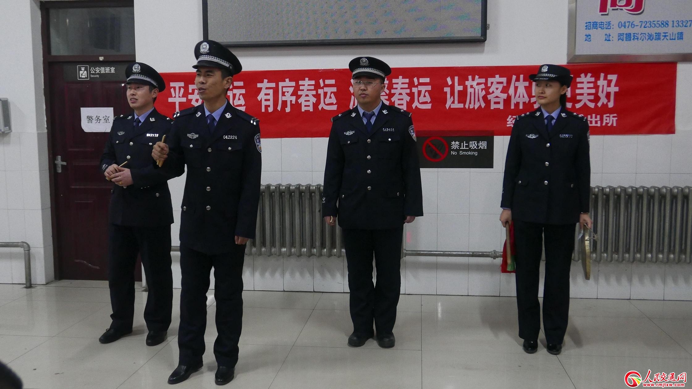 2月1日上午,在各車站候車室內(nèi),一條“平安春運(yùn)、有序春運(yùn)、溫馨春運(yùn),讓旅客體驗(yàn)更美好”的標(biāo)語(yǔ)異常醒目。錫林浩特鐵路公安處經(jīng)棚車站派出所文藝小分隊(duì)的文藝演出正式開(kāi)始,吸引了數(shù)百位旅客駐足觀看。演出中,民警們輪番上演快板說(shuō)唱、女聲獨(dú)唱等各種喜聞樂(lè)見(jiàn)的文藝節(jié)目,同時(shí)還穿插對(duì)旅客進(jìn)行出行安全、“三品”常識(shí)、列車防盜等春運(yùn)安全常識(shí)的宣傳。