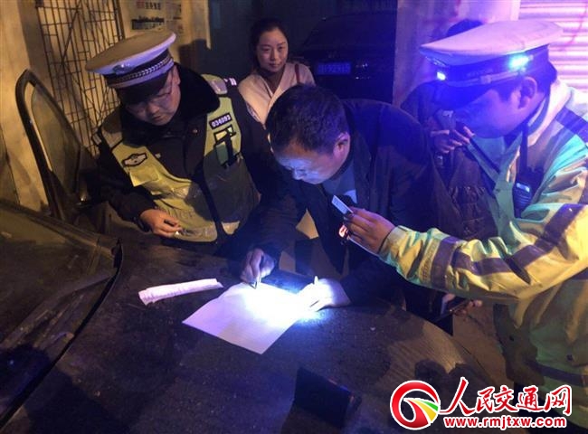 民警夜間查交通違法