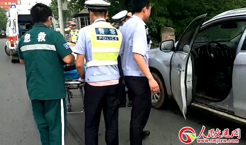 瞿輝立即將情況向附近執(zhí)勤的中隊長劉以明報告并立即撥打了120急救電話。路口趕來援助的警員作好了協(xié)助搶救的準備工作。大約15分鐘,120急救車趕來。這時,王先生已經(jīng)無法自立行走。中隊警員協(xié)助急救護士將王先生抬上救護車。民警還幫助王先生將其駕駛的小車開到交警直屬一大隊停放,并給他留下了聯(lián)系電話。