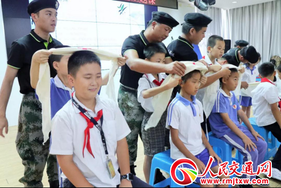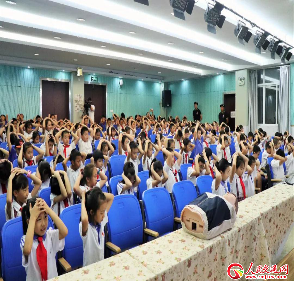 同學(xué)們認(rèn)真練習(xí)逃生姿勢(shì)