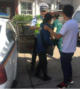 (圖為:交警現(xiàn)場(chǎng)救助傷者的情形)