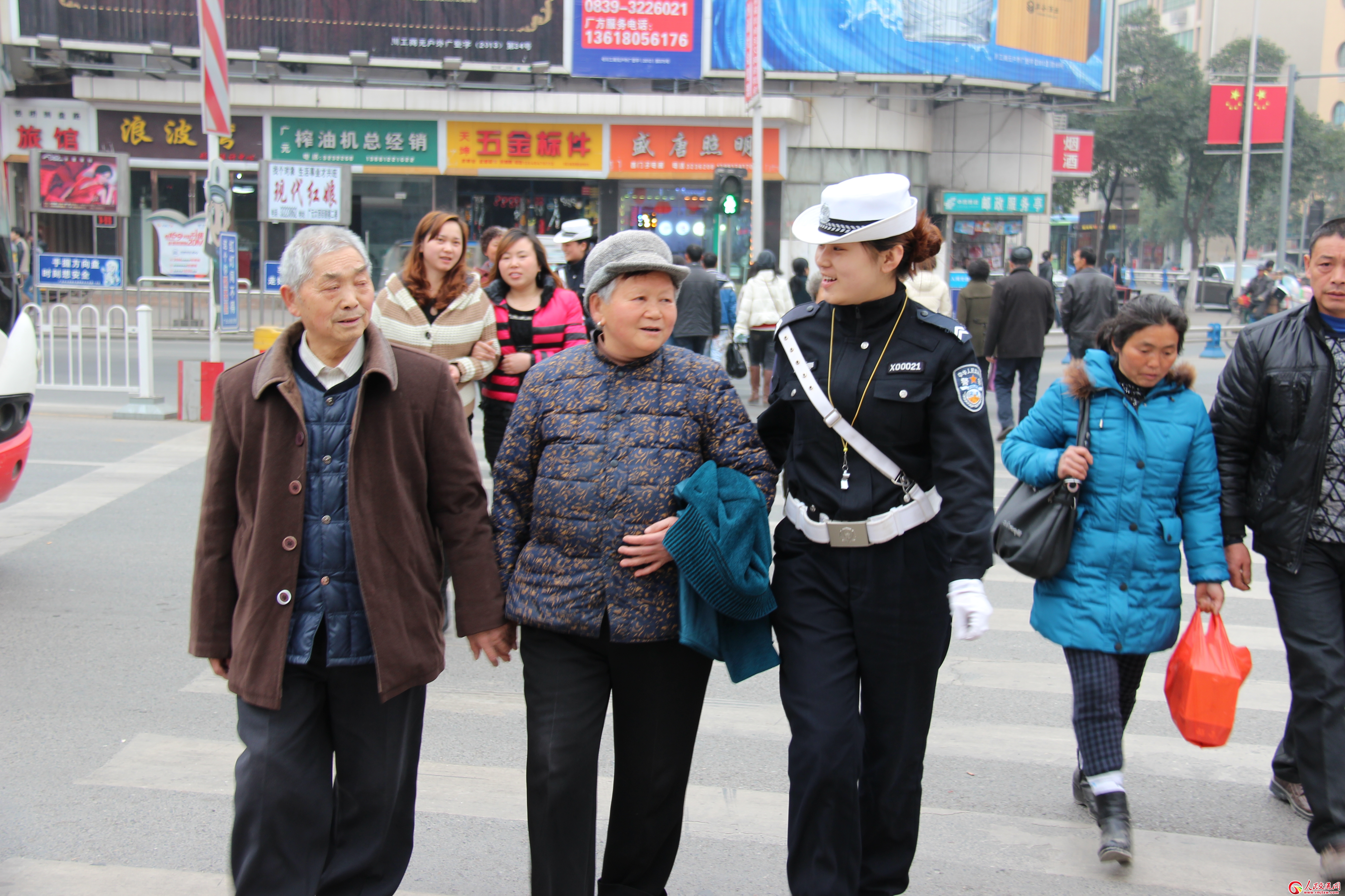 同一天在市區(qū)皇澤寺景區(qū)道路上,也發(fā)生一件交警尊老愛(ài)老的故事。