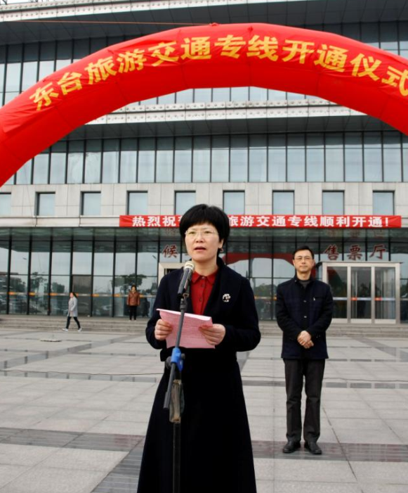 圖2為東臺(tái)市副市長(zhǎng)孫春燕宣布旅游交通專線正式開通