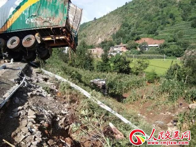 人民交通網(wǎng)訊 大掛車翻出高速公路,道路護欄斷裂,車身損毀嚴重倒插地里,路邊出現(xiàn)小面積塌方……救援,刻不容緩!