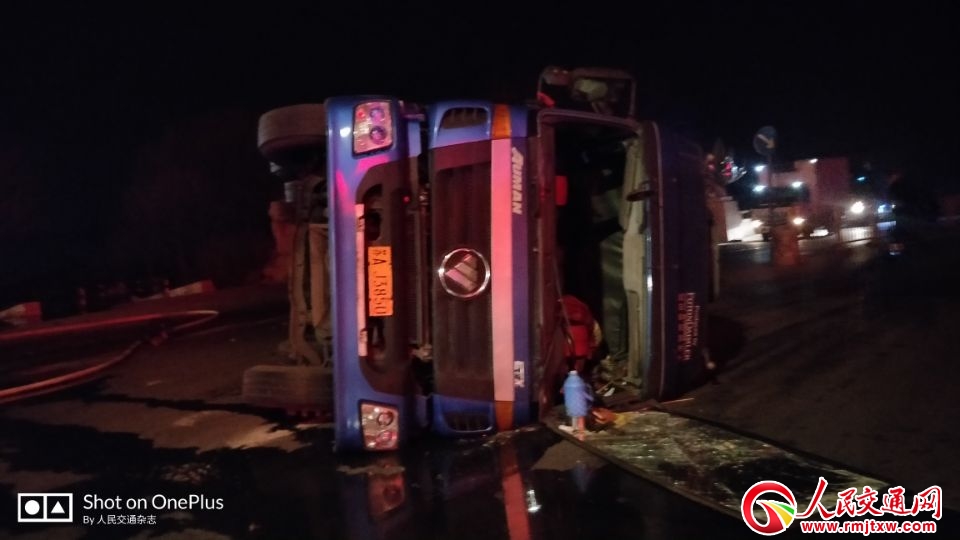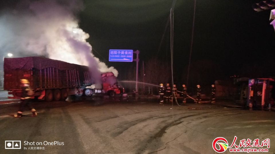 人民交通網(wǎng)訊2019年1月29日凌晨1時40分許,河北石家莊古城西路與植物園街交口,西北側(cè)發(fā)生一起2輛半掛運輸車相撞,1輛蘇AJ92597側(cè)翻,另一輛主車頭著火,2019年1月29日凌晨2時20分消防救援結(jié)束,120已將傷員救走,目前事故原因正在調(diào)查。