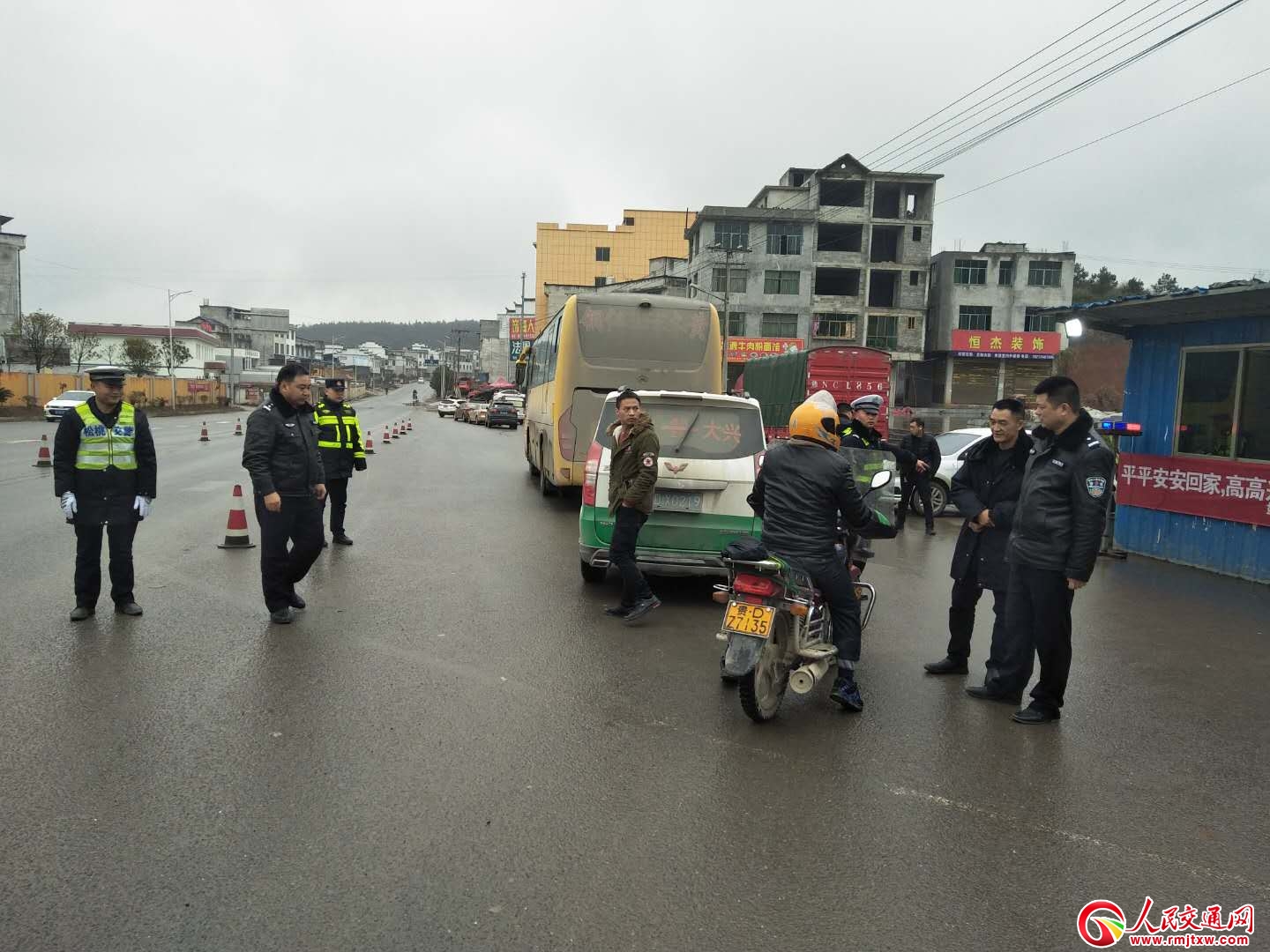 人民交通網(wǎng)訊(通訊員 龍秀生 田超飛)2月13日,松桃縣公安局王剛副局長(zhǎng)帶領(lǐng)交警大隊(duì)大隊(duì)長(zhǎng)及道安辦的工作人員深入轄區(qū)盤信鎮(zhèn)、迓駕鎮(zhèn)、盤石鎮(zhèn)、長(zhǎng)坪鄉(xiāng)、黃板鎮(zhèn)、木樹鎮(zhèn)、長(zhǎng)興鎮(zhèn)等鄉(xiāng)鎮(zhèn)惡劣天氣下的道路道路交通管理工作和春運(yùn)工作進(jìn)行了現(xiàn)場(chǎng)督導(dǎo)檢查。