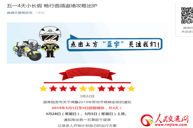按照上級公安機關(guān)要求,認真落實 “兩公布一提示”工作,在五一小長假前夕通過本地主流媒體、公安交警各類新媒體賬戶及自媒體平臺向社會公布全市“五一”假期交通研判情況和分流繞行預(yù)案,轄區(qū)事故多發(fā)點段和易擁堵路段,提示安全出行注意事項,引導(dǎo)群眾合理規(guī)劃出行時間和路線。在假期期間根據(jù)天氣狀況、群眾出行規(guī)律、各重點路段交通流量等內(nèi)容,精心編制交通安全提示信息,通過微博、微信平臺、手機短信平臺及時發(fā)布。同時,利用路面LED電子屏不間斷播放出行注意事項和安全行車常識,讓群眾隨時隨處可見安全提示。