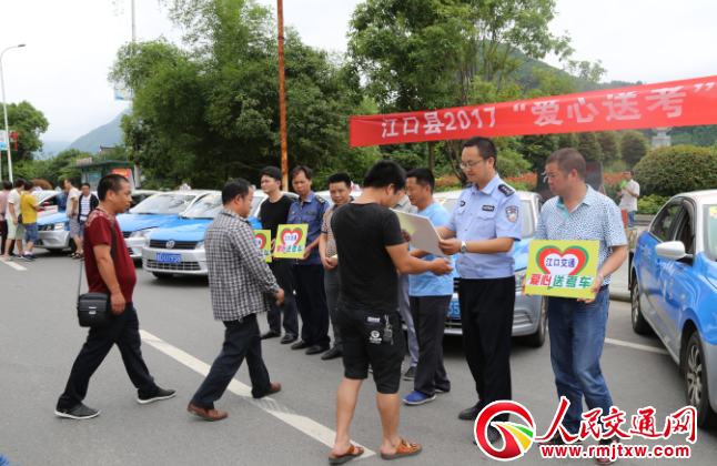2017年高考即將來(lái)臨,由江口愛(ài)心運(yùn)輸企業(yè)組成的“愛(ài)心送考”車隊(duì),將在高考期間向全縣1474名考生提供免費(fèi)接送考生的服務(wù)。用愛(ài)送考,用心服務(wù),這道亮麗的城市風(fēng)景線,讓考生充分感受到來(lái)自整個(gè)社會(huì)各行各業(yè)的關(guān)愛(ài)!