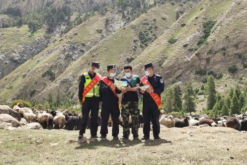 為進(jìn)一步提高轄區(qū)牧民群眾的法律意識和法制觀念,引導(dǎo)牧民群眾自覺遵守法律法規(guī),營造學(xué)法、知法、懂法、守法的良好社會氛圍。近日,新疆阿克蘇邊境管理支隊(duì)英阿特邊境派出所結(jié)合“百萬警進(jìn)千萬家”活動,組織警務(wù)室民警對轄區(qū)牧民群眾開展普法宣傳。