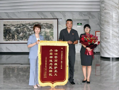 一起海上人身損害責(zé)任糾紛案件的當(dāng)事人到大連海事法院訴服中心,將一面鮮紅的錦旗和一捧艷麗的花束送到了法官施瑒和書記員李琳琳手中。接過沉甸甸的錦旗和花束,大家心里感到十分溫暖。“法治營商維護正義,辦案神速為民解憂”,這十六個大字,是當(dāng)事人對大連海事法院工作的感謝與肯定,對于法官來說更多的是一種信任、一種責(zé)任,這更加堅定了一線法官為人民群眾排憂解難、化解矛盾糾紛的信念和決心。
