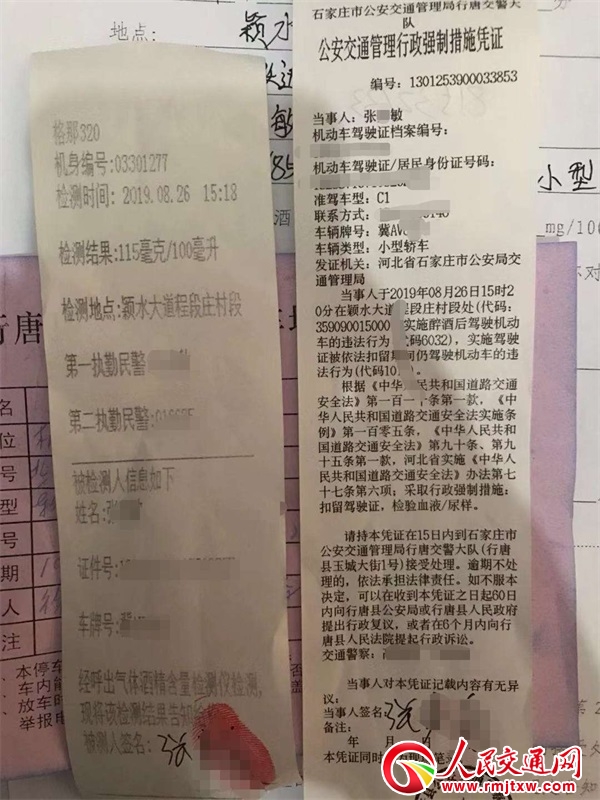 當民警要求該車駕駛?cè)诉M行呼吸式酒精測試時,司機卻以各種理由拒絕酒精檢測,還說自己沒喝酒。當民警要求查看其駕駛證時,司機一會說在車上,一會兒又說丟了。經(jīng)民警利用警用系統(tǒng)查詢發(fā)現(xiàn),該車駕駛?cè)藦埬趁粲?月20日14時46分,飲酒后駕駛車輛,被行唐公安交警城區(qū)中隊處罰,駕駛證扣留。但是,張某敏依舊我行我素,在駕駛證扣留期間,于8月20日15時因醉酒駕駛冀A***WT小型越野客車,再次被城區(qū)中隊查獲,至今尚未接受處理。