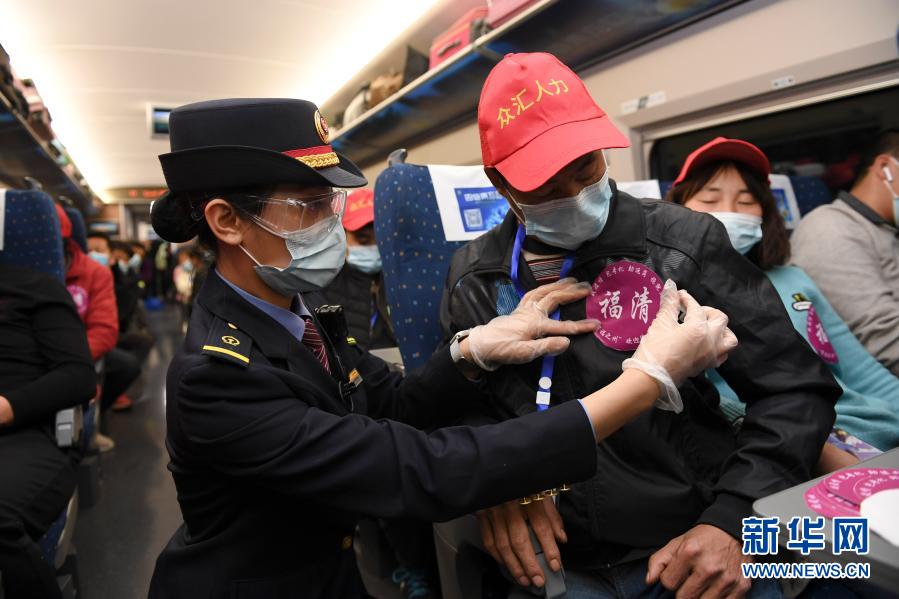 當(dāng)天,500多名來自甘肅省定西市的務(wù)工人員搭乘G1901次列車抵達(dá)福州。這是閩隴兩省間2021年首趟返閩務(wù)工專列。