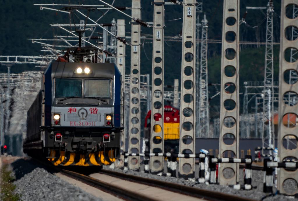 12月4日,貨物列車即將駛入位于中老邊境的友誼隧道。當日清晨,從昆明站始發(fā)、滿載貨物的國際貨物列車抵達磨憨鐵路口岸,隨后這趟列車將穿過友誼隧道前往老撾。這是中老鐵路開通后開行的首趟國際貨物列車。(新華社記者江文耀攝)